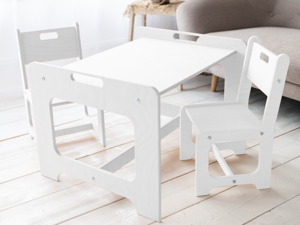 A SIMO asztal és székek az alapkínálatban külön vásárolhatók meg. De ha két gyermeke van, akkor érdemesebb egy asztalt két székkel szettben vásárolni kedvezményes áron. Egyszerűek, funkcionálisak, letisztult vonalakkal és időtlen dizájnnal rendelkeznek. Igazán illeszkednek minden belső térbe. A székek oldalán és háttámláján lévő fogantyúknak köszönhetően könnyen szállíthatóak. Az asztal és a székek sarkai lekerekítettek, ami csökkenti a sérülésveszélyt. Az asztal és a szék 15 mm vastag bükkfunérlemezből készült. Kellő stabilitást, szilárdságot és biztonságot biztosítanak.
